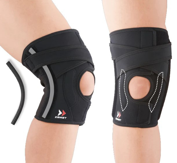 Stabilise fermement sans empêcher le mouvement Avec un support en résine active spécialement conçu (breveté) qui permet de fléchir et étirer le genou en douceur, il réduit la contrainte sur le celui-ci.